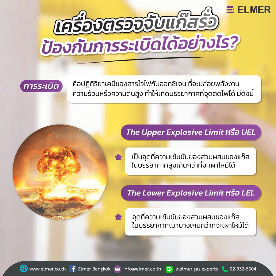 ซึ่งความเข้มข้นของแก๊สในระหว่างจุด UEL และ LEL อาจทำให้เกิดการติดไฟ หรือ การระเบิดได้ โดยไม่มีข้อสังเกตที่เห็นได้ชัด ดังนั้นการเลือกติดตั้ง เครื่องตรวจจับแก๊สรั่ว ที่ได้รับรองมาตรฐานความปลอดภัย ในระดับสากล จึงถือเป็นเรื่องที่สำคัญ ทั้งในเรื่องของความปลอดภัย และยังช่วยในการรับมือกับ อุบัติเหตุแก๊สรั่ว ซึ่งเป็นอีกหนึ่งสาเหตุ ที่ทำให้โรงงานอุตสาหกรรมเกิดการติดไฟ หรือการระเบิด ได้อย่างทันท่วงที โดยรุ่นที่ทาง Elmer แนะนำ คือ