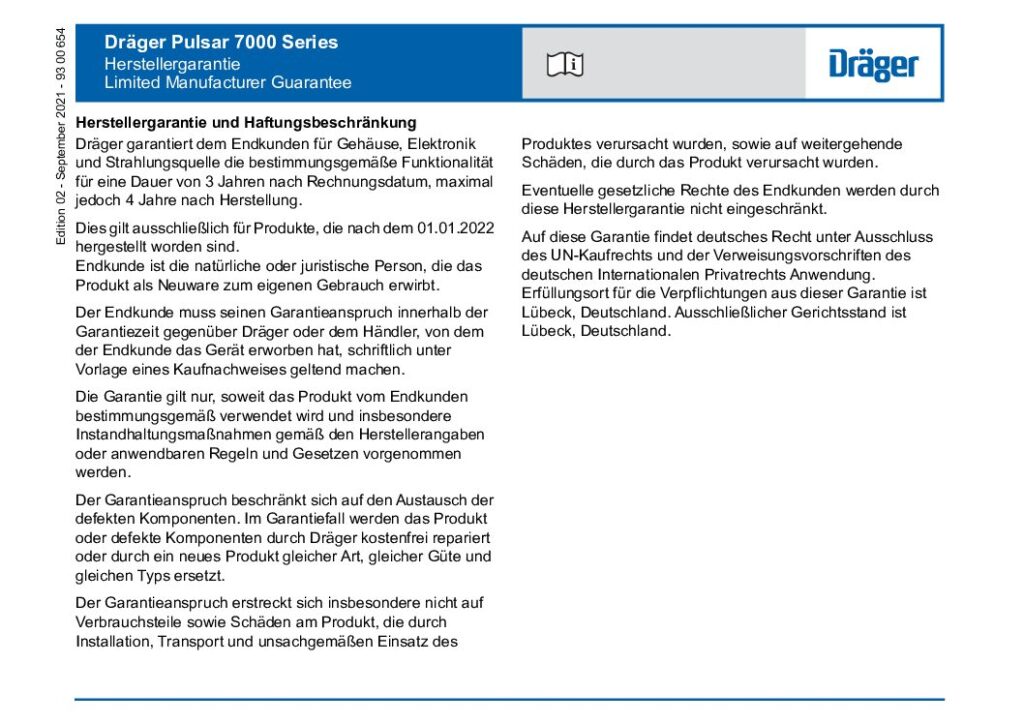 Limited Manufacturer Guarantee_Garantiekarte Pulsar 7000 Serie 9300654 (ed 02), en, de