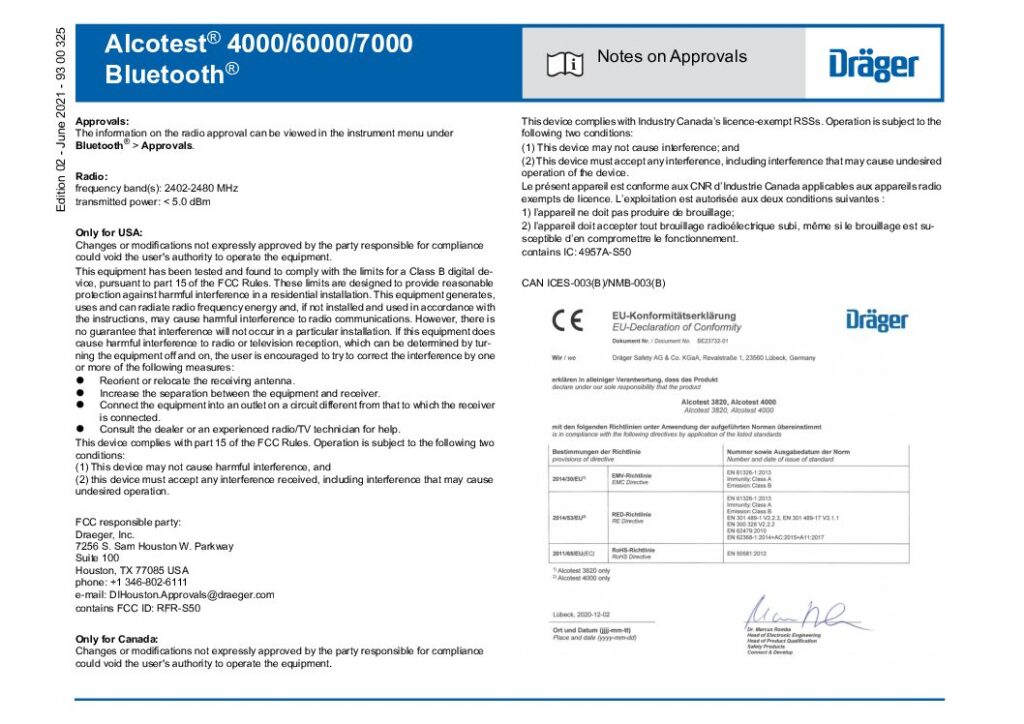 IFU SP Alcotest 7000 Notes on Approvals 9300325 en